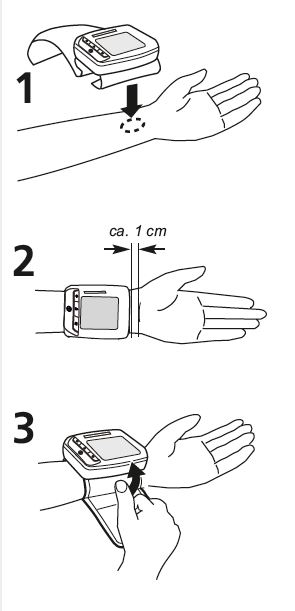 2. Der Abstand zwischen Manschette und Handteller muss ca. 1 cm betragen