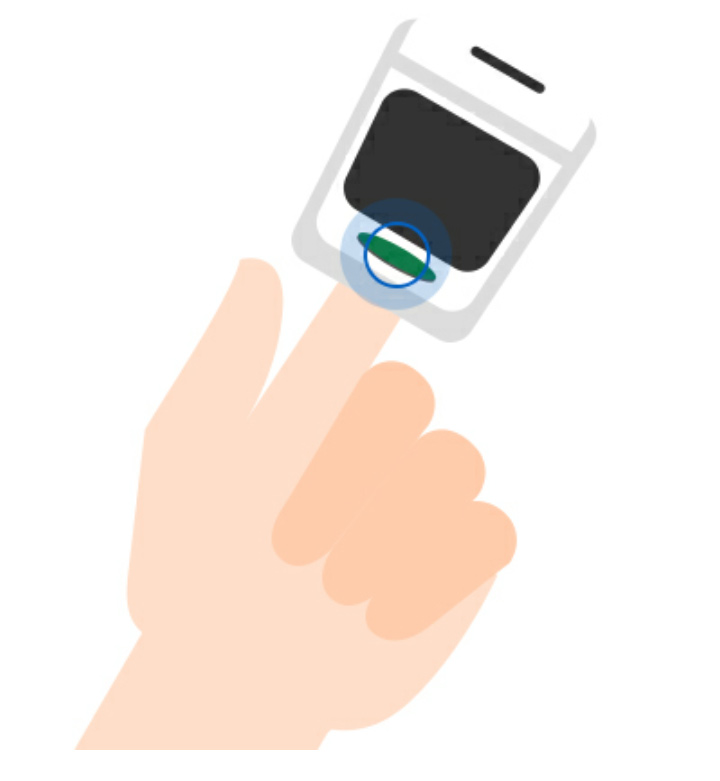 The device will turn on and bluetooth will be activated. Stay as calm as possible during the reading.